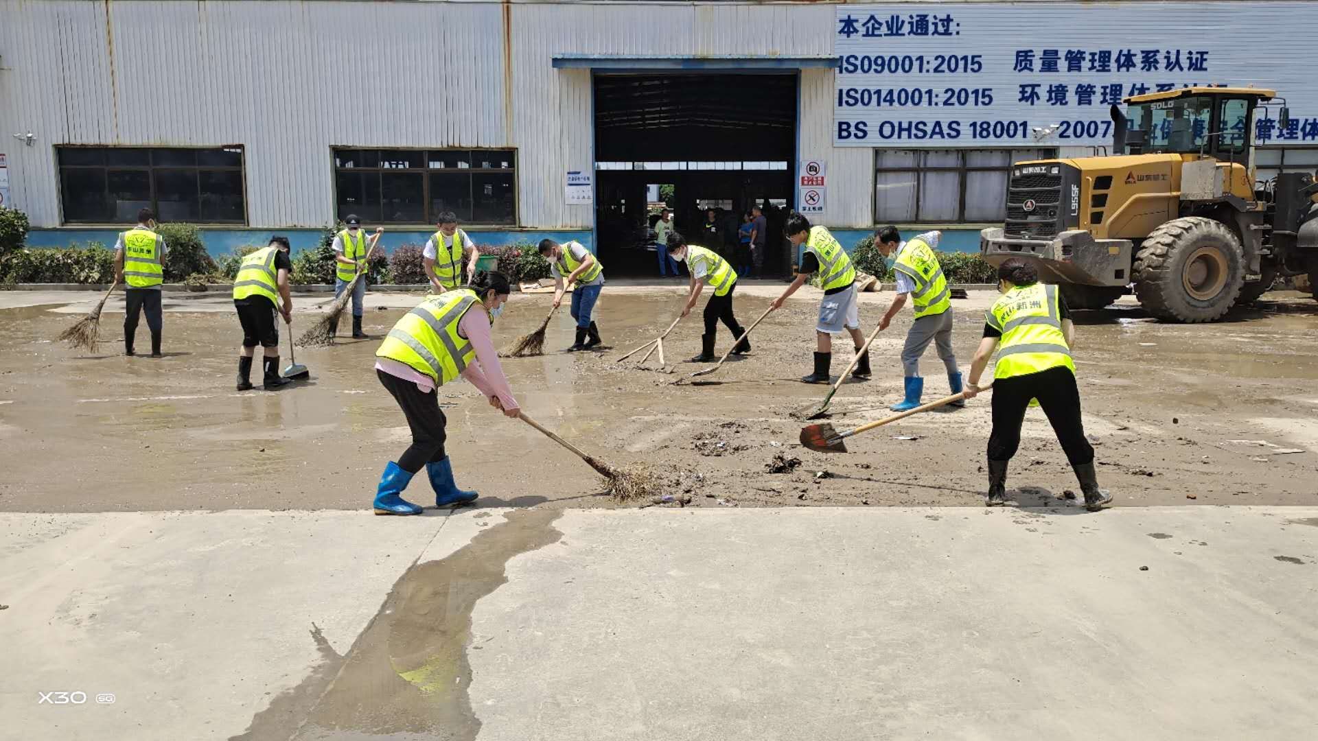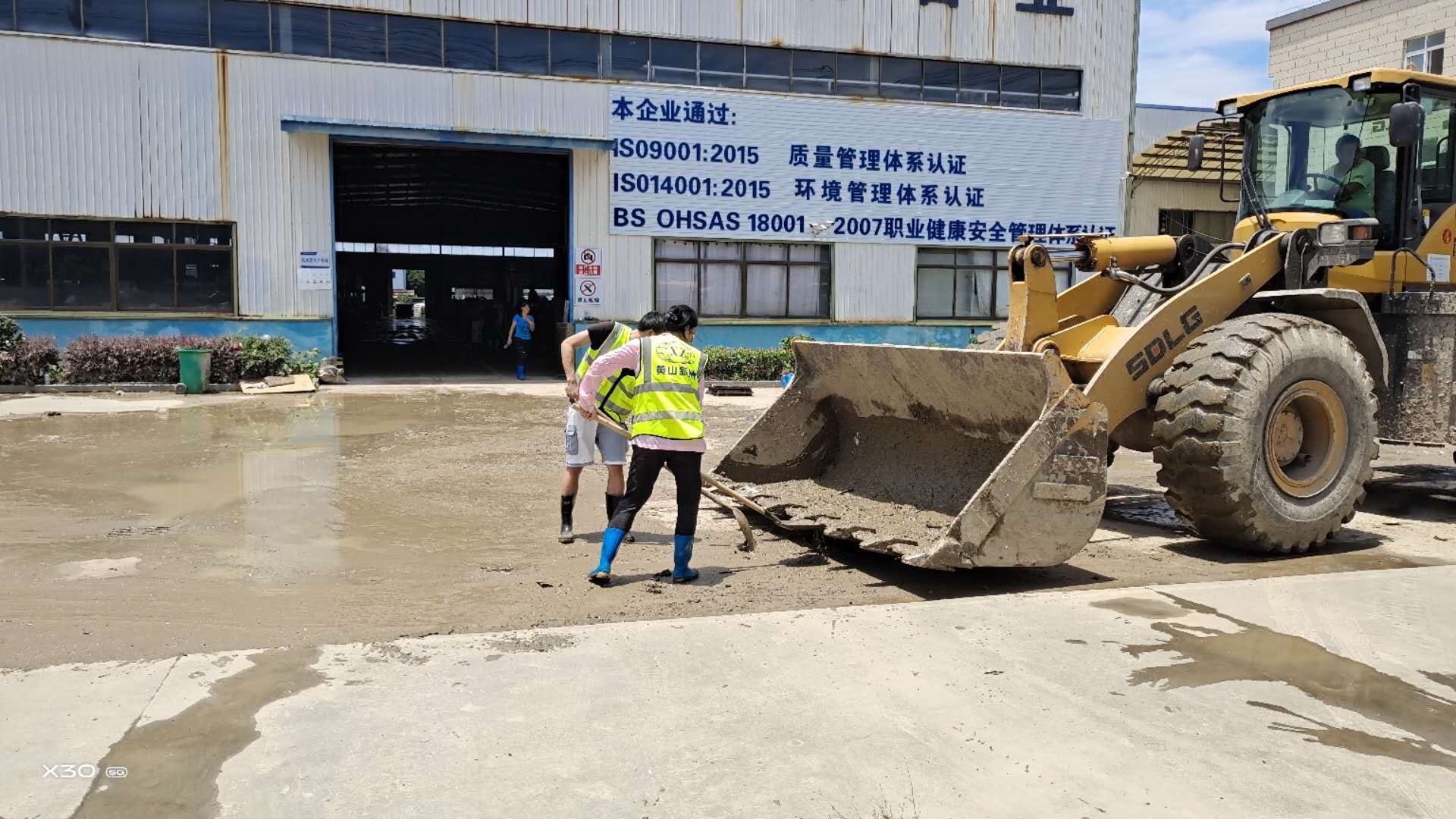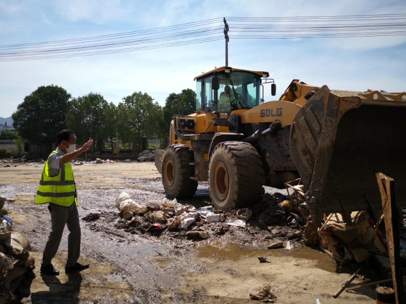 上午8時(shí)許,黃山新洲公司黨員、入黨積極分子、抗洪搶險志愿者開(kāi)著(zhù)鏟車(chē)、灑水車(chē)從屯溪區出發(fā)到達歙縣經(jīng)開(kāi)區受澇嚴重的黃山順濤管業(yè)有限公司進(jìn)行衛生清掃,先清理垃圾及淤泥,再進(jìn)行集中消毒消殺。烈日炎炎,新洲支部的黨員志愿者們個(gè)個(gè)不怕臟,不怕累,頂著(zhù)烈日,揮汗如雨。通過(guò)一個(gè)上午的勞動(dòng),在人機配合下,掃除了垃圾,清除了表面泥土,受災企業(yè)的工作環(huán)境煥然一新。