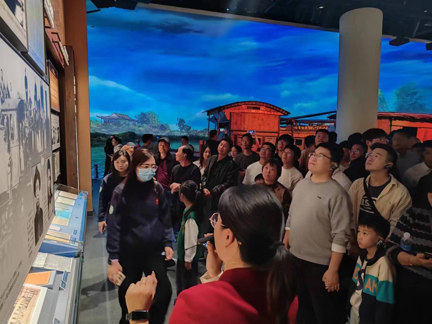在南湖游覽結束后,大家共同前往了南湖革命紀念館,從中國共產(chǎn)黨成立,再到抗日戰爭結束,最后我黨帶領(lǐng)中國人民取得了新民主主義革命的勝利,成立了中華人民共和國。這一條充滿(mǎn)曲折的革命道路,使我們堅定了對我黨的初心和信心,也應更加堅定地走具有中國特色社會(huì )主義的道路。