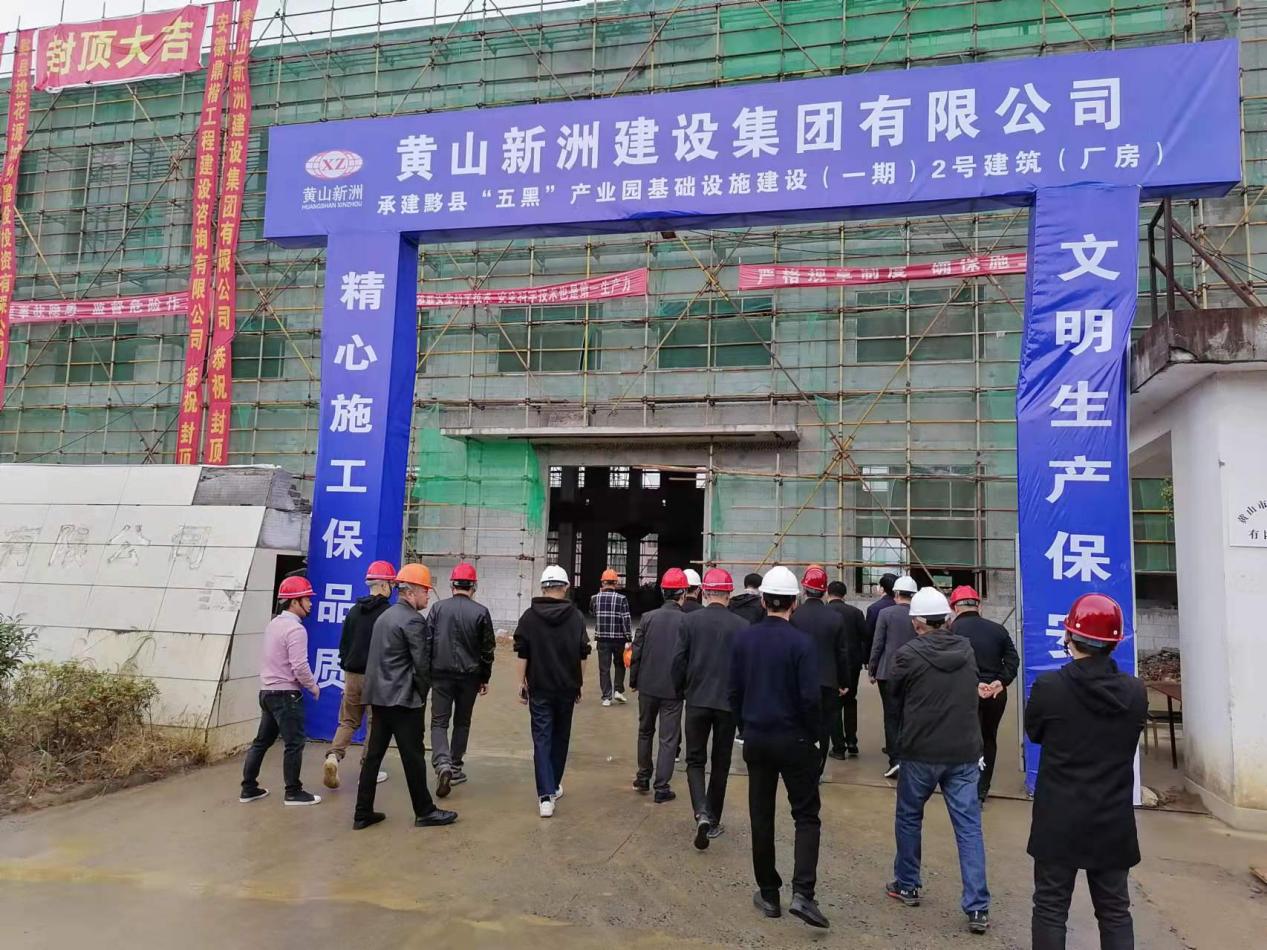 2021年11月5日上午,黟縣縣委書(shū)記葉建明一行人蒞臨公司承建的黟縣“五黑”產(chǎn)業(yè)園基礎設施建設(一期)2號建筑(廠(chǎng)房)施工現場(chǎng)進(jìn)行檢查調研。