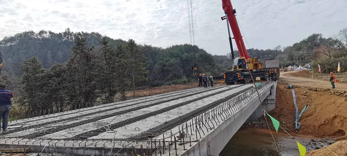 鮑家橋全長(cháng)30.04米,橋梁全寬8.5m,凈寬7.5m,橋梁結構為1×20m預應力砼密肋式簡(jiǎn)支T梁。為順利完成梁板吊裝作業(yè),公司精心組織,在梁板吊裝前認真做好安全技術(shù)交底、設置警戒區域等前期準備工作,在吊裝當日公司安全部前往施工現場(chǎng)監督指導,確保安全施工,保障該橋梁主體工程順利完成。