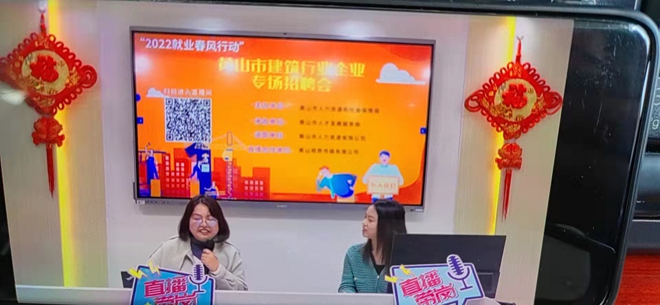 為應對年后企業(yè)用工高峰,緩解企業(yè)“招工難”問(wèn)題,集團公司積極響應黃山市建筑業(yè)協(xié)會(huì )的號召,于2022年2月9日參加了由黃山市人力資源和社會(huì )保障局主辦的“2022就業(yè)春風(fēng)行動(dòng)”黃山市建筑行業(yè)企業(yè)專(zhuān)場(chǎng)招聘會(huì )--直播帶崗活動(dòng)。