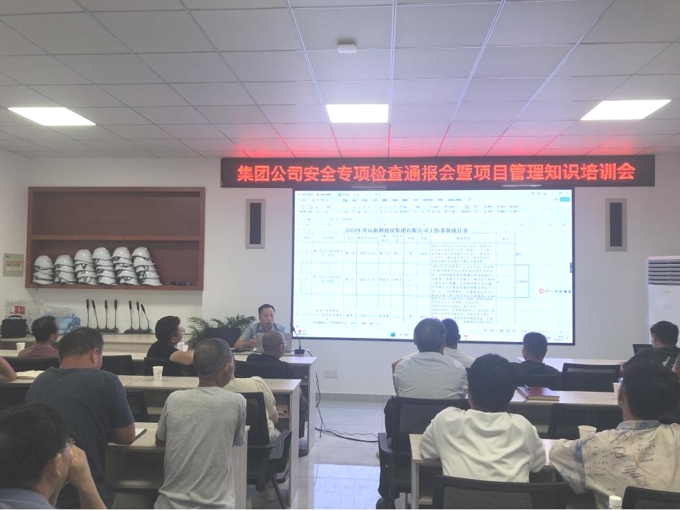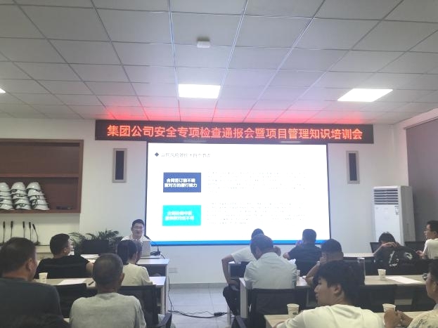 為積極防范各類(lèi)事故發(fā)生,強化風(fēng)險意識,確保各在建項目施工安全穩定,集團公司于7月下旬組織開(kāi)展了安全生產(chǎn)專(zhuān)項檢查,并于2023年8月19日在綠洲公司二樓會(huì )議室召開(kāi)了關(guān)于安全專(zhuān)項檢查通報會(huì )暨項目管理知識培訓會(huì )。會(huì )議由集團公司分管安全副總經(jīng)理張遠林主持,黨支部書(shū)記李惠明、法務(wù)部、安全部、財務(wù)部、綜合辦公室、人力資源部、工程部及項目管理人員共計41人參會(huì )。