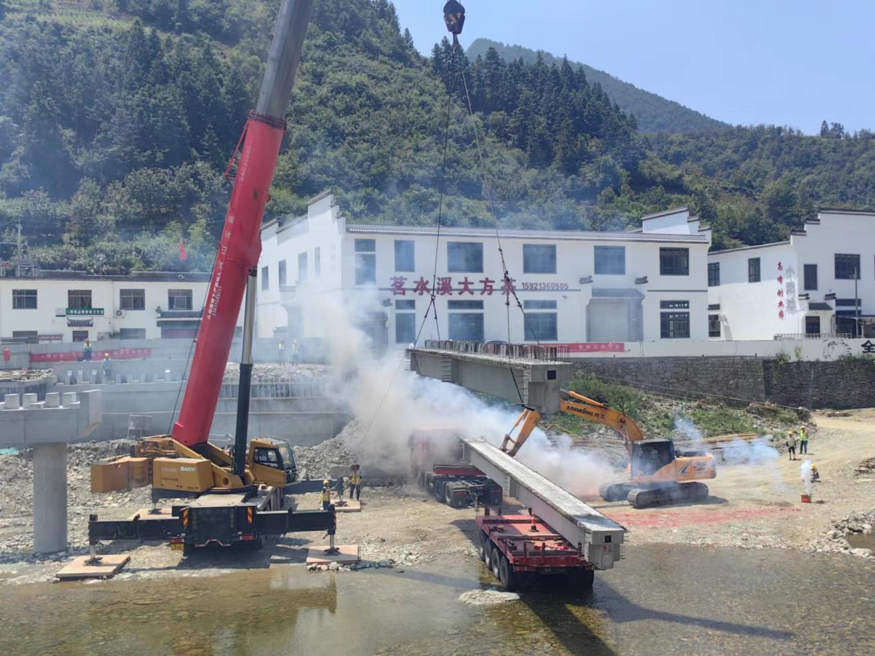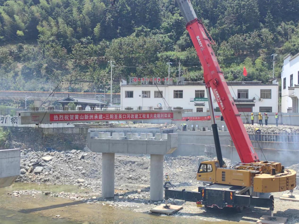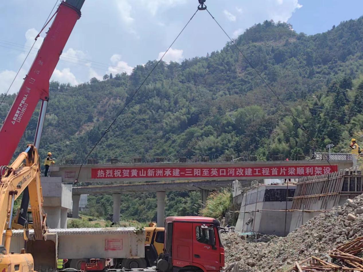 連日的持續高溫擋不住筑路人的步伐,8月5日上午,炎炎烈日之下,隨著(zhù)煙花爆竹的一聲聲爆炸,我公司承建的歙縣三陽(yáng)-英坑河口農村道路改建工程,K1+148線(xiàn)外橋第一片梁板架設成功。
