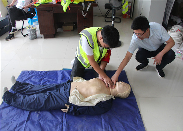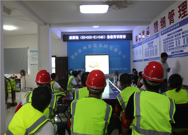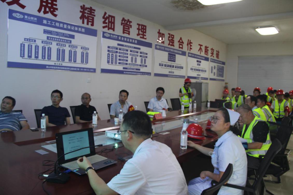 為確保演練順利進(jìn)行,項目經(jīng)理巴亮(現場(chǎng)指揮)組織多次預演,并邀請歙縣人民醫院專(zhuān)家于歙黟路項目部會(huì )議室進(jìn)行現場(chǎng)急救常識培訓(止血方法、包扎、固定、搬運等創(chuàng )傷技術(shù)、心肺復蘇急救方法等)。