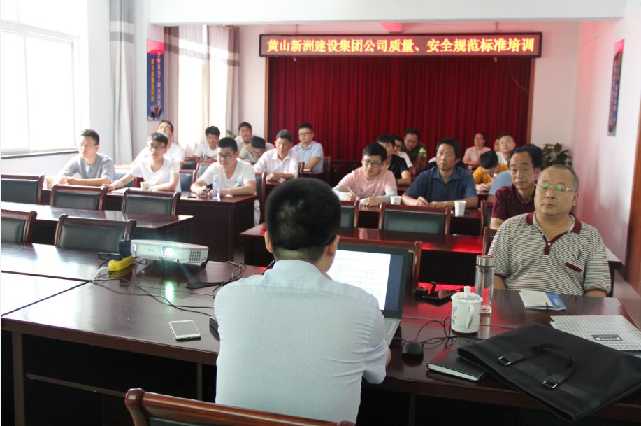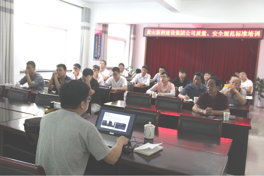 為提升項目管理人員的質(zhì)量、安全意識,規范項目質(zhì)量、安全管理工作,2019年7月20日,集團人力資源部組織開(kāi)展了質(zhì)量、安全規范、標準的培訓。此次培訓有幸邀請了黃山學(xué)院的黃劍、曹海教授擔任了培訓講師。集團公司工程部、安全環(huán)保部及技術(shù)部管理人員參加了此次培訓。